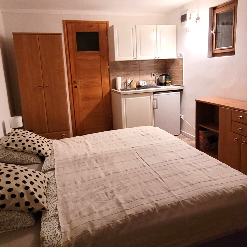 Az önálló bejárattal rendelkező kis lakrész akadálymentesített, itt egy hálószoba,teakonyha, és egy fürdőszoba kapott helyet.