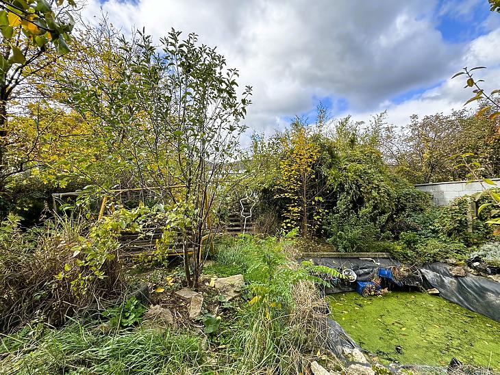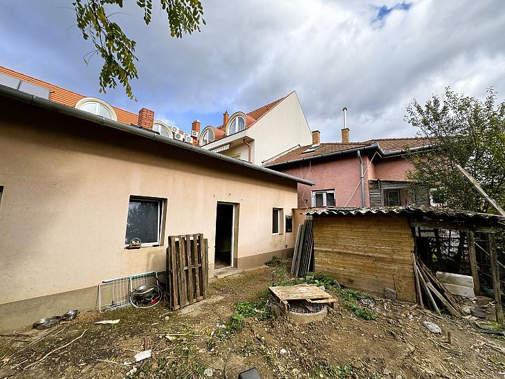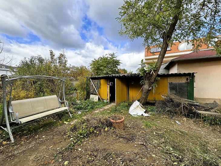 A telken jelenleg két különálló épület és egy dupla beállós garázs található, amely felújítást igényel, de akár bontás után az új építkezéshez is jó alapot nyújthat.