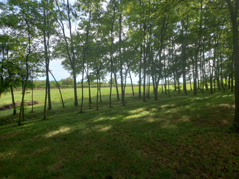 120 m alapterületű \\\"gazdasági épület\\\" építhető a telekre, 4 méteres építménymagasság mellett + szőlő vagy gyümölcsös telepítése esetén. A terület negy része már fával betelepített. Mindemellett számos épÍtési engedélyhez nem kötött felépÍtmény helyezhető el az ingatlanon: Pl. 35 m2-t meg nem haladó épület, magasles, fóliasátor, üvegház, napenergia-kollektor épÍtményen vagy épÍtményben való elhelyezése, vadetető, erdei épÍtmény, terepszinttől számÍtott 5 métert nem meghaldó kilátó, pince épÍtése.