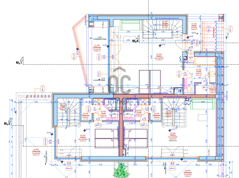 - Modern gépészet: szabályozható hűtés/fűtés (fal- és padlófűtés), automata szellőztetőrendszer