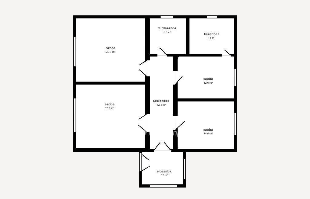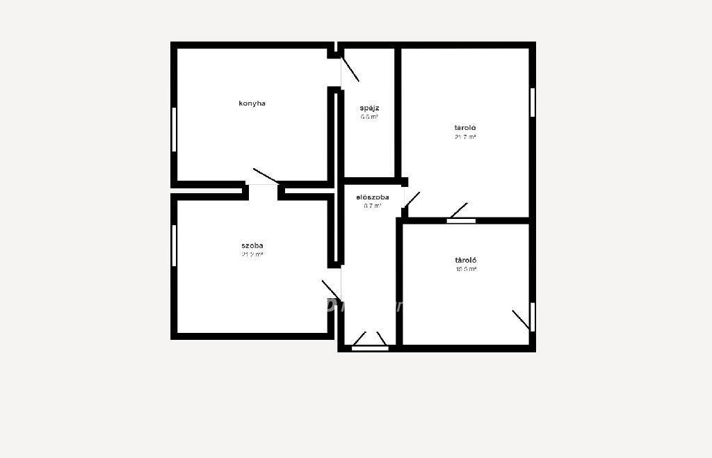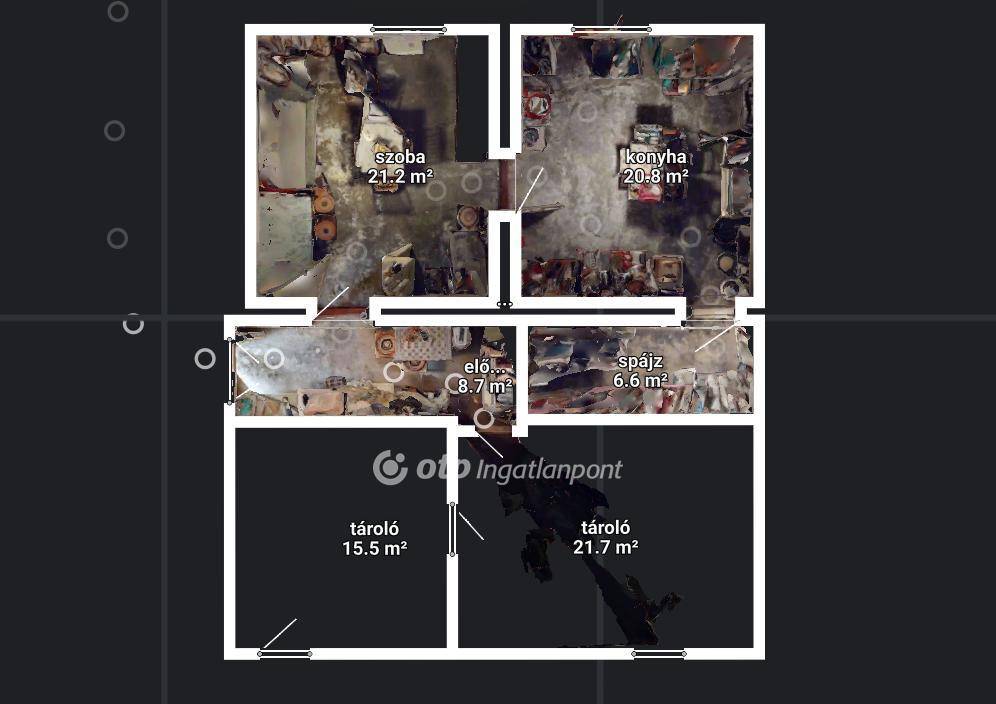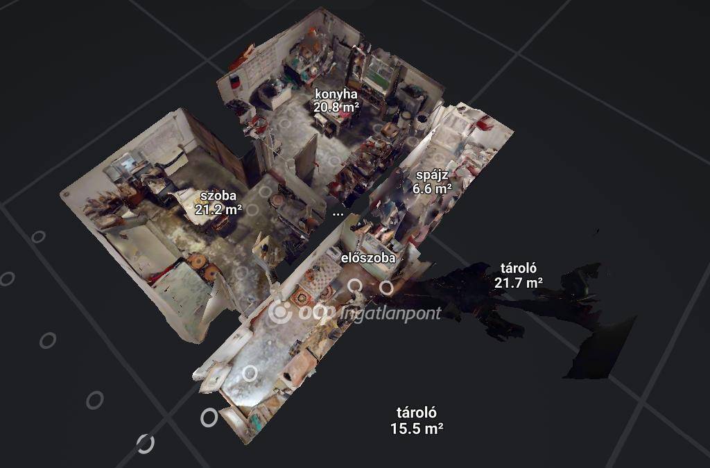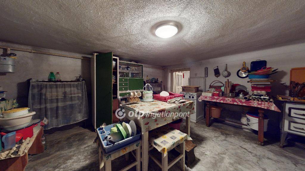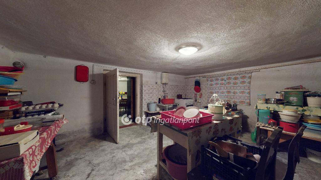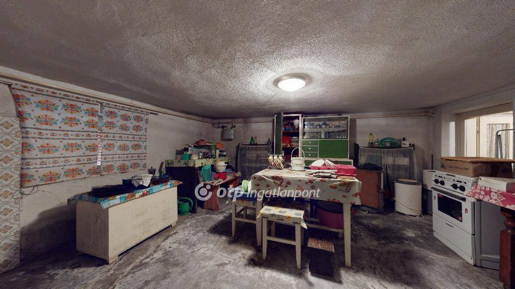 A szuterén rész önmagában még 95 nm lakóteret, vagy tárolóhelyiségek kialakítására elegendő helyet biztosít. Jelenleg egy szoba + konyha + spájz került kialakításra, a többi helyiség tárolóként volt használatban.