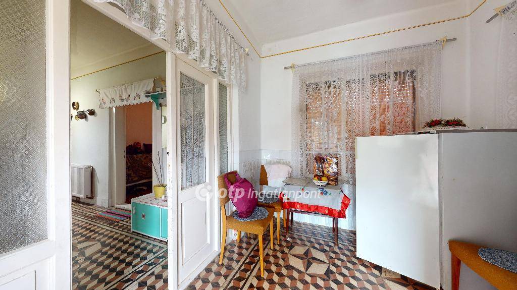 Eladó SZÖGLIGET frekventált helyén egy nettó 110 nm-es 4 szobás, tégla és kő építésű, jó állapotú szuterénes, összeközműves családiház.