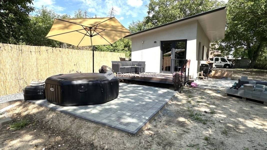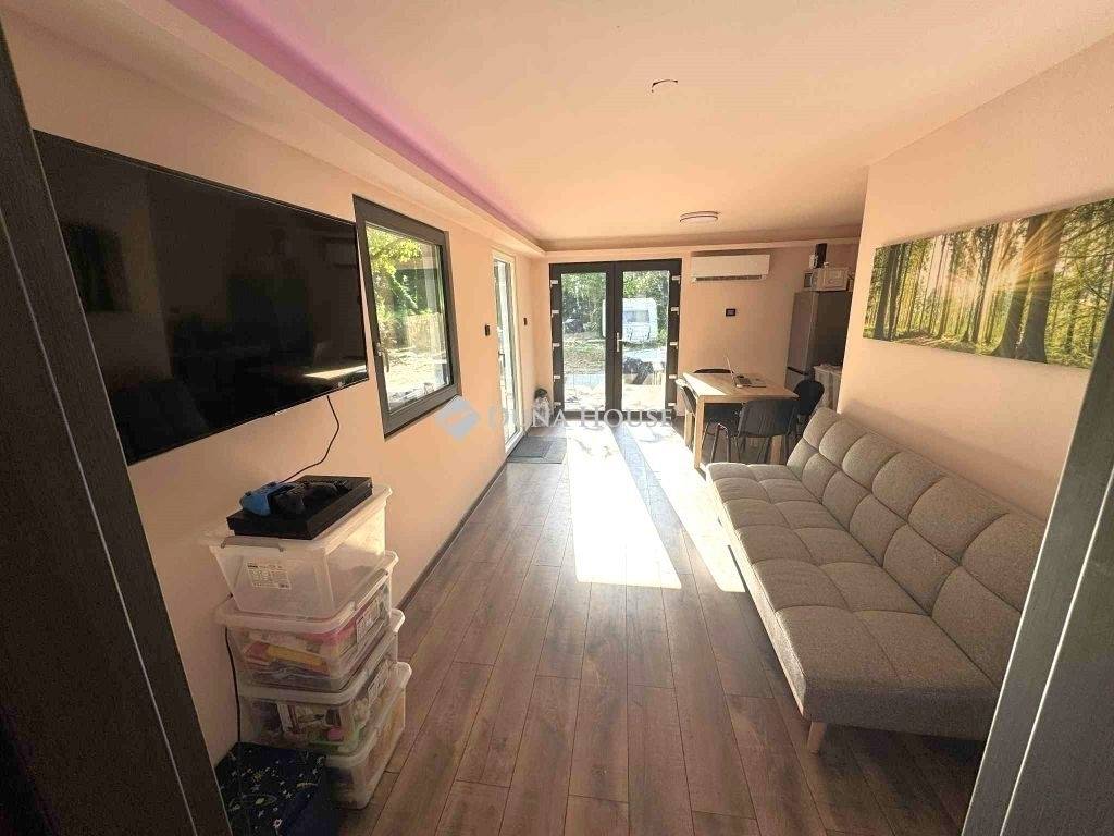 Bükfürdő közelében Bőben eladóvá vált egy 1000 m2 alapterületű kivett beépítetlen terület besorolású telek, a rajta álló 90% készültségű, 34 m2 alapterületű hétvégi házzal. A Répce part közeli telken, a 8 pontalapon nyugvó mobilház 10 cm-es szendvicspanelből készült, amit még 10 cm széles hőszigetelés borít. A házba három rétegű műanyag nyílászárók kerültek beépítésre. A ház fűtéséről elektromos padlófűtés és hűtő- fűtő klíma gondoskodik, amit 1 fázisú 32A-es elektromos vezeték lát el energiával. A ház előtt 10 m2 alapterületű WPC terasz biztosít teret a nyári estéken egy kis sütögetéshez, bográcsozáshoz. A telken egy félkész állapotú medence is található. Az utcában megtalálható víz és csatorna bevezetése már az új tulajdonosra vár.Ne hagyja ki a kínálkozó lehetőséget! Bővebb információért, megtekintésért vegye fel velem a kapcsolatot elérhetőségeim egyikén !NE FELEDJE! Vásárlóink számára minden szolgáltatásunk ingyenes!
