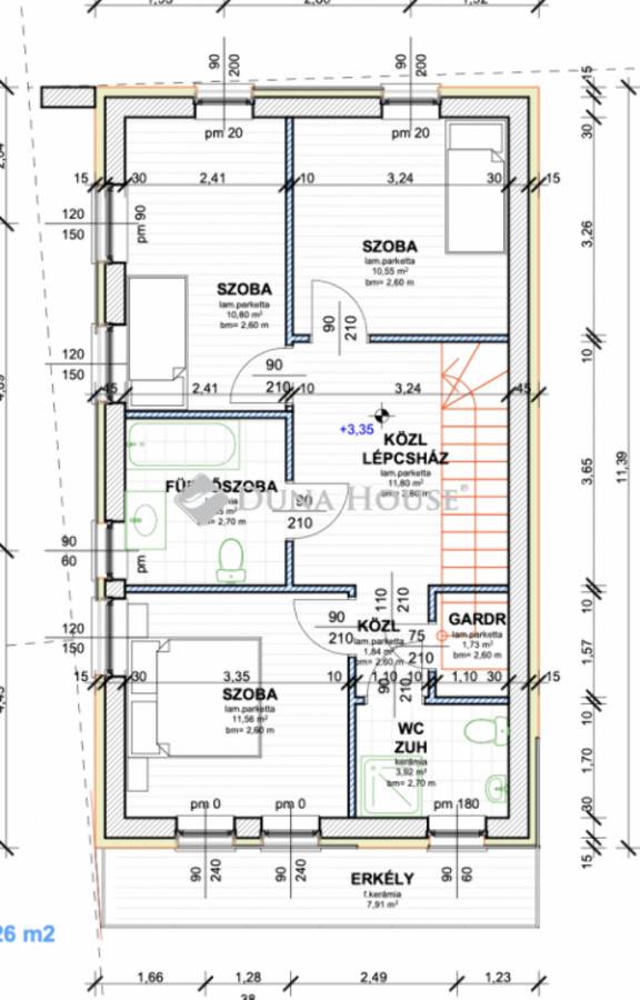 Eladó új építésű, kétszintes ikerházfél Vecsés központjában modern kialakítás, saját garázzsal, terasszal és udvarrésszel!Vecsés egyik legkeresettebb, legnagyobb presztízsű részén, a Fő út közelében, kiváló infrastruktúrával rendelkező területen megvételre kínálunk egy 140 m²-es, új építésű ikerházfelet. A projekt átadása 2026. I. negyedévében várható.Ez az ingatlan egyedülálló lehetőséget kínál azoknak, akik korszerű, energiahatékony otthont keresnek Vecsés központjában.Főbb jellemzők:* Alapterület: 140 m²* Telek területe: 256 m²* Szerkezet: Ytong falazat, kiváló hő- és hangszigeteléssel* Fűtés: hőszivattyú (padlófűtéses rendszer)* Szintek: földszint + emelet* Gépkocsibeállás: garázs + külső parkolóhely (10-20 m-re az ingatlantól)* Terasz és óvott udvarrész* Erkély a felső szinten, a hálószobákból közvetlen kijárattal* A ház a garázsnál kapcsolódik az ikerfélhez, ezáltal teljesen szeparált, intimitása és önállósága megmaradt.Választható belső elemek:* Hideg- és melegburkolatok 7.000 Ft/m² árig* Belső ajtók 100.000 Ft/db árig* Szaniterek 600.000 Ft értékhatárigMűszaki felszereltség:* Korszerű hőszivattyús fűtési rendszer* Hőszigetelt, 3 rétegű nyílászárók* Padlófűtés minden helyiségben* Elektromos redőny és klímaelőkészítés* Igényes, minőségi burkolatok és szaniterekElhelyezkedés:* Iskola: közvetlenül az utca túloldalán* Bevásárlási lehetőségek: Market Centrál, Lidl, Aldi néhány perc autóval* Busz- és vasútállomás gyalogosan is közel* Budapest központja kb. 20 perc alatt elérhető autóval vagy tömegközlekedésselMiért érdemes megtekinteni?* Kiváló lokáció Vecsés legkeresettebb része* Modern, energiatakarékos technológia* Magas műszaki tartalom* Saját garázs, udvar és terasz* Tökéletes választás családoknak és befektetőknek egyarántEz az ikerházfél egy olyan új építésű otthon, ahol a modern technológia és a kénylem találkozik a kiváló elhelyezkedéssel. A kivitelezés magas minőségű, a ház építése folyamatban van, az átadás 2026 tavaszára várható.Érdeklődés esetén több információval, alaprajzzal és személyes egyeztetési lehetőséggel állok rendelkezésre.Ügyvédi közreműködés és hitelügyintézés egy helyen.