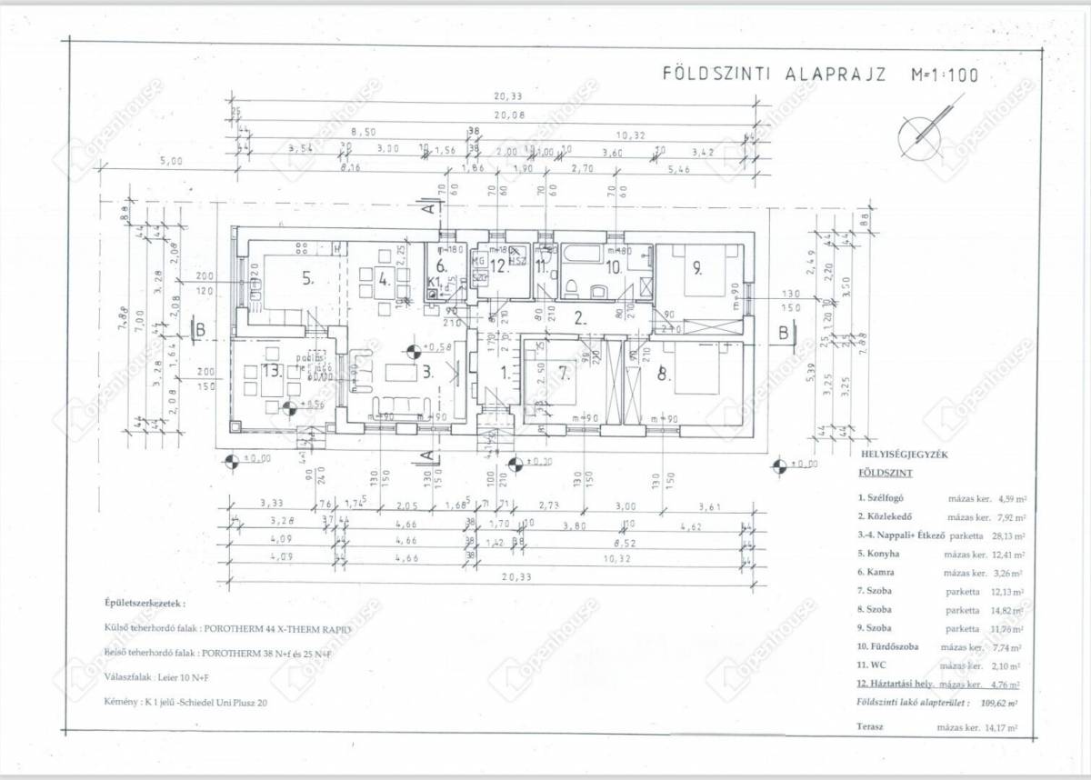 Az ingatlan 44-es Porotherm külső és 38-as belső téglafalakkal épül, minőségi fa nyílászárókkal, valamint hőszivattyús fűtéssel, padlófűtéssel, így hosszú távon is energiatakarékos és komfortos otthont biztosít.