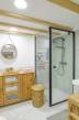 Az alsó szinten travertin mészkő padló burkolat van római mintában rakva, a galérián laminált padló.