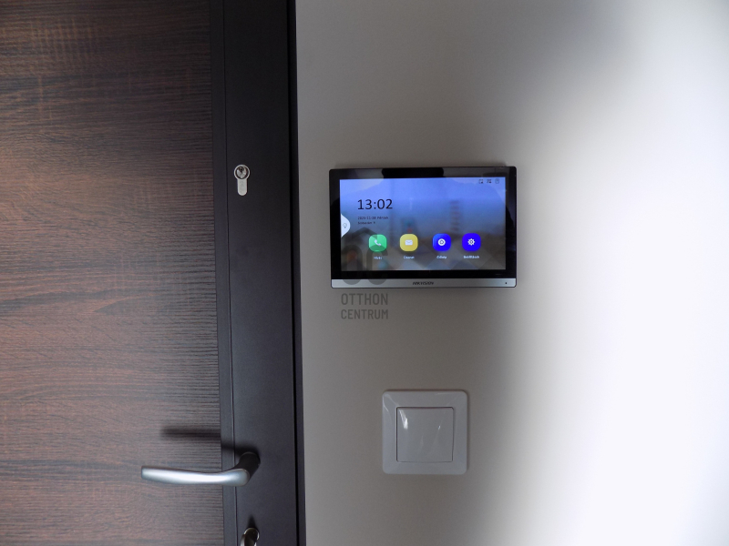 Kaputelefonálás nemcsak a kapu és a lakás, hanem a lakások közötti beszélgetést is lehetővé teszi, kamerás beengedés, érintő chipes kapnyitással működik.