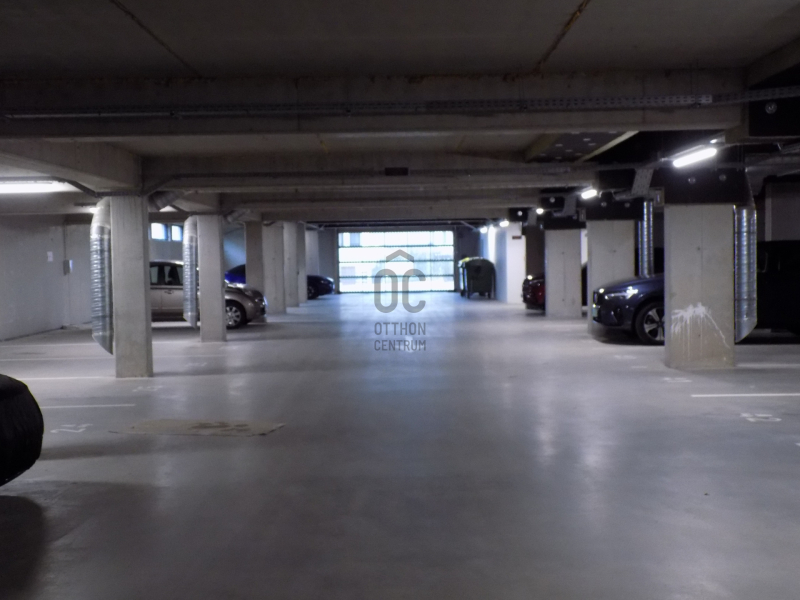 A magasföldszinti, Délnyugati tájolású erkélyes lakáshoz tartozik 1 autó számára teremgarázshely, ezenkívül egy 5 nm-es, önálló tároló.