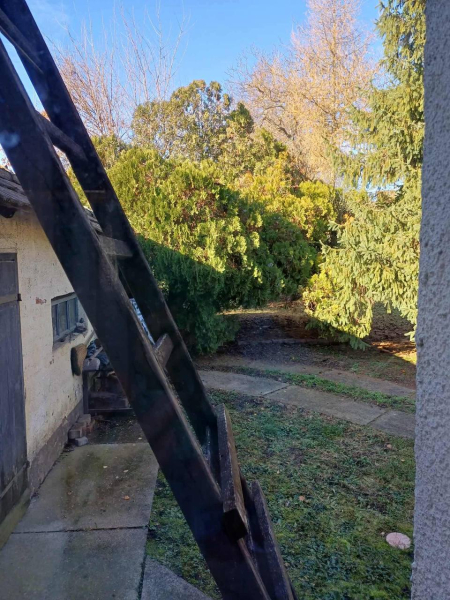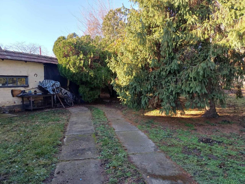 A főépülethez melléképület is csatlakozik. A telek hangulatos, sík, nagy fenyőfákkal, ásott kúttal rendelkezik. Akár egy új ház építésének ötlete sem elvetendő. :)