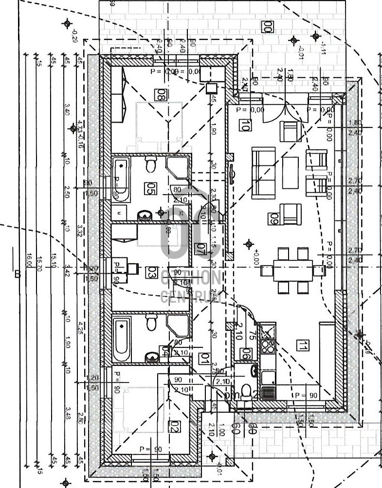 - Az épület sáv alapozással épül, 30-as N+F kerámia falazó blokkból, készülnek.