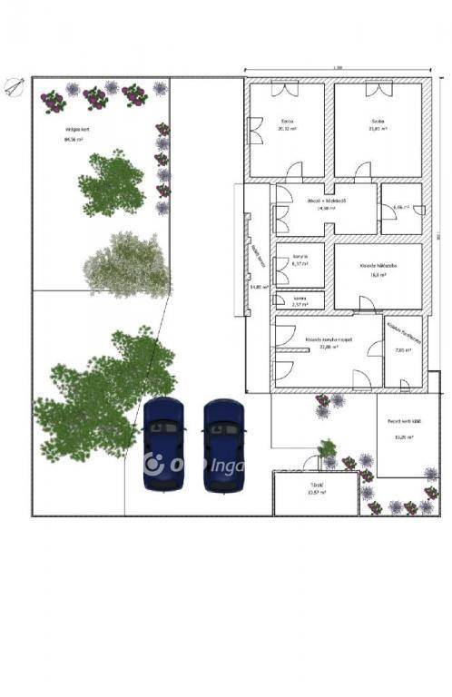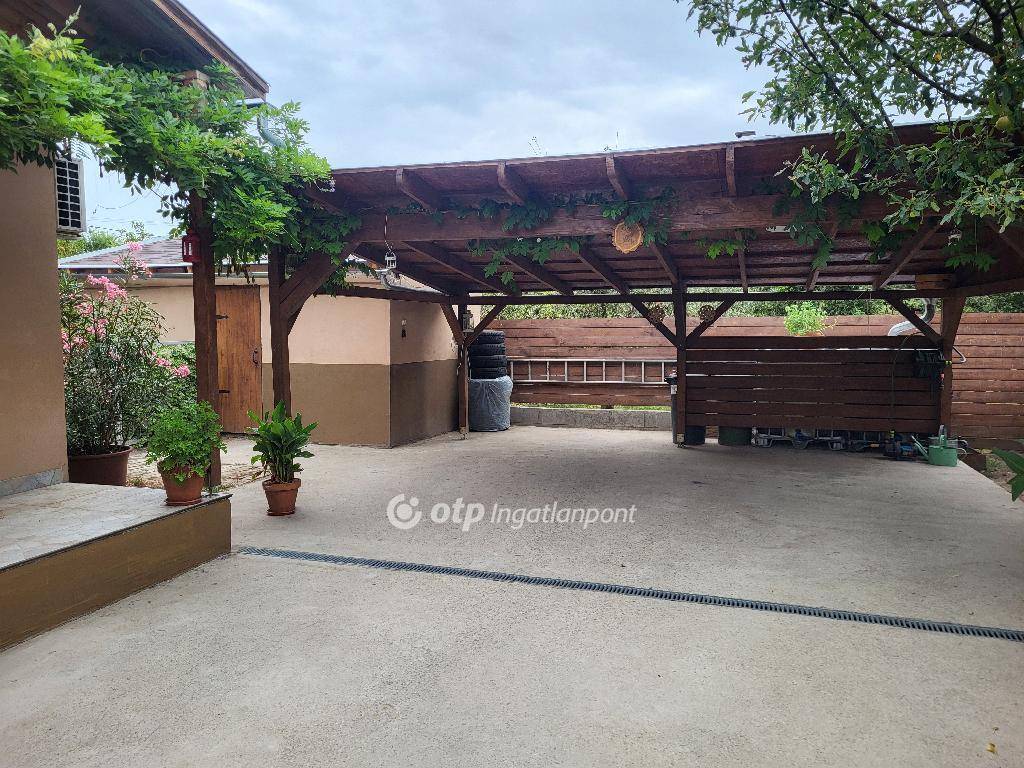 A házhoz tartozik egy kényelmes, két autó számára kialakított kocsibeálló, valamint egy hangulatos kerti kiülő, ahonnan az igényesen megtervezett, angol stílusú kert látványa minden nap valódi feltöltődést ad. A kertben motorizált, 2 köbméteres esővízgyűjtő gondoskodik a fenntartható öntözésről, a telek mögött pedig már a mezők kezdődnek, a közelben csörgedező patakkal ? igazi vidéki idill vár itt minden nap.
