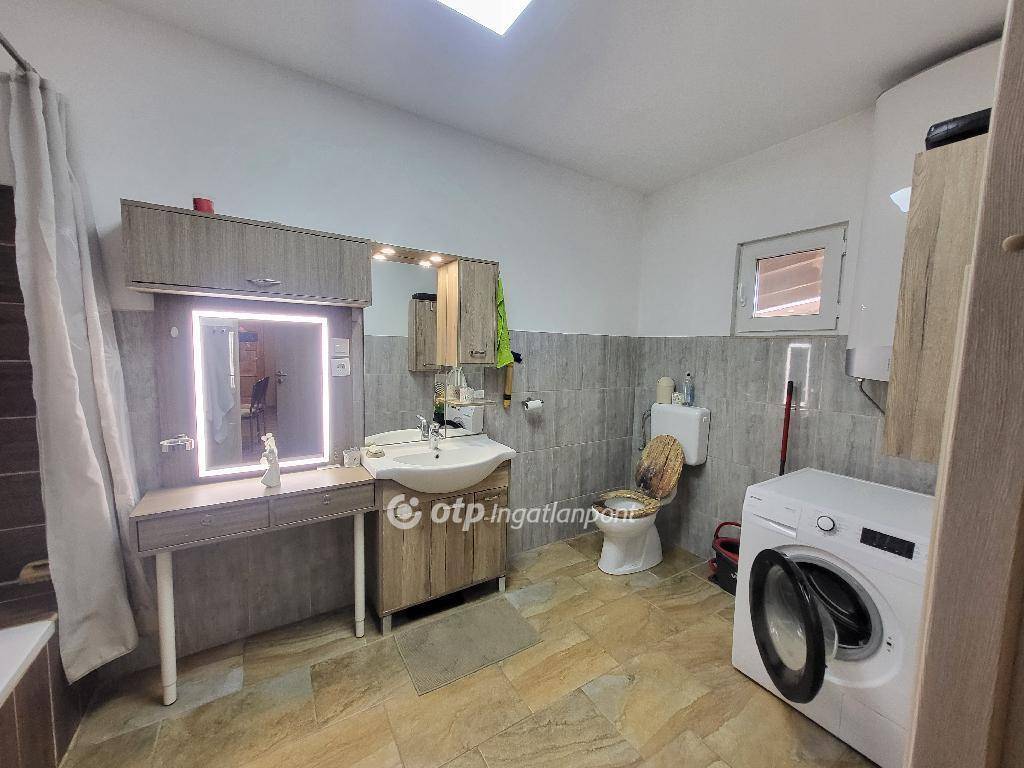 A ház 518 m2-es telken áll, 121,3 jól átgondolt, praktikus élettérrel, külön mérőórákkal és korszerű, átfolyós kombi gázkazánnal. A kisebb lakrészben napfényes amerikai konyhás nappali, egy kényelmes hálószoba és egy nagy fürdőszoba kapott helyet, míg a nagyobb lakrész konyhát kamrával, nappalit, két tágas hálószobát és egy fürdőszobát kínál.