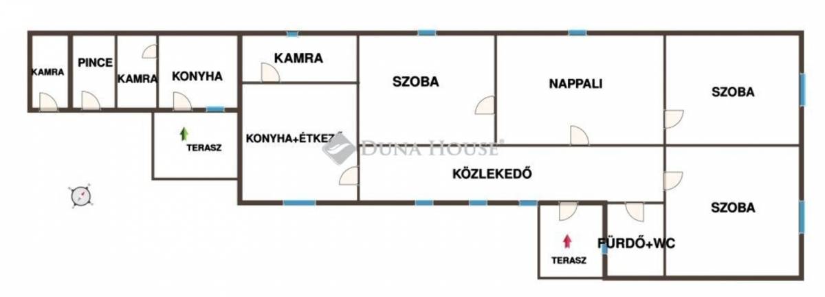 Kialakítása : 3 tágas külön nyíló szoba, nappali, közlekedő, fürdő+wc, konyha+étkező, kamra. További nyári konyha, kamra, tároló és pince a fő épület után.