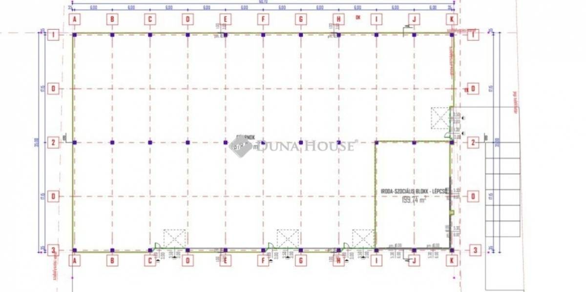 M0-ás lehajtótól 500m helyezkedik el a csarnok egy 5265 m2 telken (GKSZ-6).