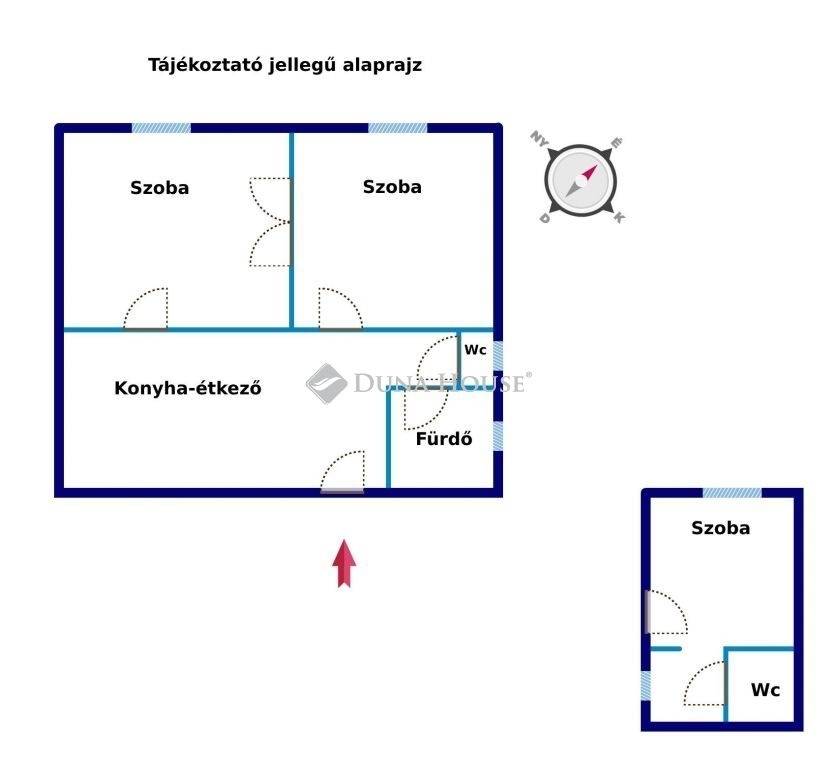 Eladó családi ház nagy telekkel Táborfalva központjában csendes utcában, akár vállalkozásra is!Táborfalva szívében, forgalomtól mentes, nyugodt környezetben kínálunk megvételre egy hangulatos, 1970-es években épült, beton alapú vályogházat. A 2182 m²-es, rendkívül tágas telek ideális választás mindazok számára, akik szeretik a természet közelségét, a kertészkedést és a vidéki békét.A főépület 63 m²-en:2 szobakonyhaétkezőfürdőszobakülön WCMelléképület akár vállalkozásra is!A 15 m²-es, korábban kozmetikaként működő melléképület saját mosdóval rendelkezik, így kiváló lehetőség:vendégházirodaszolgáltató tevékenységhobbihelyiségkialakítására. Fűtése klímával megoldott.Műszaki tartalom és felújítások:2017-es felújítás: új műanyag nyílászárók, 3 cm külső szigetelés, teljesen új elektromos hálózatmelegvíz: villanybojler mindkét épületbenfűtés: 2 darab klímaberendezés + kandalló kialakításának lehetőségegáz az utcábanExtrák, amik a vidéki életet még kényelmesebbé teszik:fúrt kút locsoláshoztyúkudvar a kert végébenpince a termények tárolásárabefejezésre váró, hangulatos bejárati terasza ház igény szerint tovább bővíthetőTáborfalva remek elhelyezkedésének köszönhetően Budapest 60 km-re, Kecskemét 30 km-re található; az 5-ös főúton és az M5-ös autópályán gyorsan elérhető.Ez az ingatlan ideális választás fiataloknak, idősebbeknek, vidéki életre vágyóknak, de akár vállalkozóknak is!