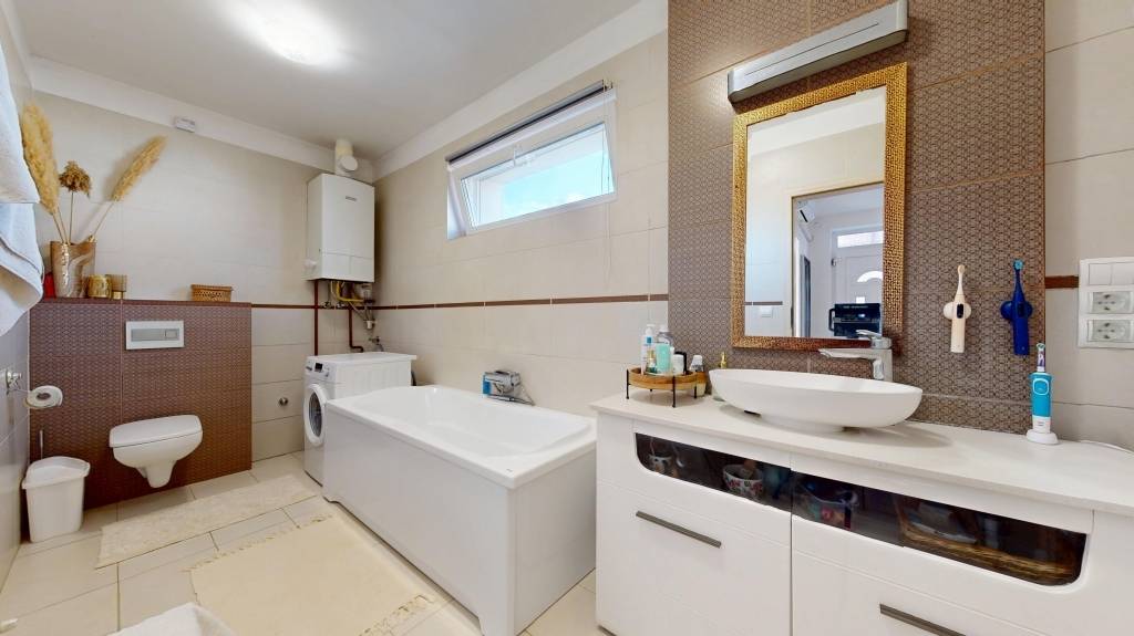 Modern, napelemes családi ház eladó a Nyírbátorban - közel a városközponthoz, akár azonnali költözéssel! Eladásra kínálunk egy 51 nm-es, felújított kertes házat 21 nm-es fedett terasszal, mindössze 800 méterre a centrumtól. Az ingatlan minden részletében átgondolt, korszerű otthon: 8 éve teljes körű felújítást kapott , megújult a villamos- és vízhálózat, a fűtésrendszer, valamint új cseréptető került rá. Energiatakarékos, fenntartható otthon 3 fázisú, 3,5 kW-os napelemrendszer, még 8 évig éves szaldós elszámolással , így a rezsiköltség gyakorlatilag 0 Ft is lehet Bosch kondenzációs gázkazán, átlagosan mindössze 10.000 Ft/hó fűtéssel Klíma, amely nyáron hűt, télen rásegít a fűtésre Kényelem és biztonság minden szinten Okostelefonról vezérelhető kamerarendszer és motoros kapu Kovácsoltvas jellegű kerítés, esztétikus és biztonságos 3 kamrás műanyag nyílászárók és motoros redőnyök Belső tér és elrendezés: A ház elosztása praktikus és otthonos: 2 külön nyíló szoba, konyha , étkező , fürdőszoba, beépített gardrób .Ízléses, modern bútorzat, amely igény esetén maradhat A ház vegyes falazatú, kiváló állapotban van, és azonnal beköltözhető , sem felújításra, sem plusz ráfordításra nincs szükség. Csendes, rendezett környezet, mégis közel mindenhez. Ideális választás pároknak, kis családoknak vagy bárkinek, aki energiatakarékos, korszerű otthont keres. OTP Banki hátterünknek köszönhetően finanszírozási igényekben (pl. Otthon Start Hitelprogram, Babaváró, Falusi CSOK, CSOK Plusz, Lakáshitel, Személyi kölcsön stb.), illetve biztosítások tekintetében is díjmentesen, soron kívüli ügyintézéssel segítem ügyfeleim! Ez a ház nem marad sokáig a piacon , hívjon még ma, és nézze meg személyesen !Referenciaszám: M316493