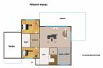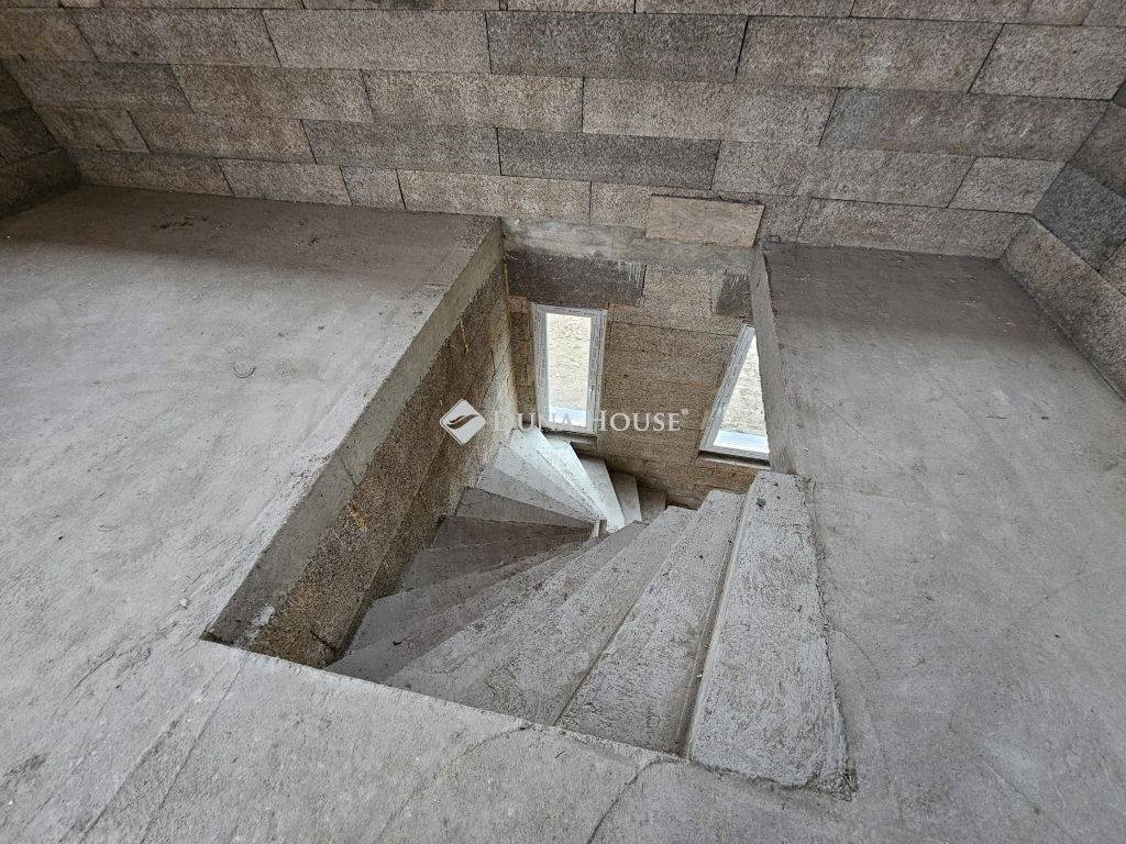 Az emeletre lépcső vezet, ahol kialakításra kerül 4 szoba, két zuhanyzó,10 m2 es konyha és terasz is.