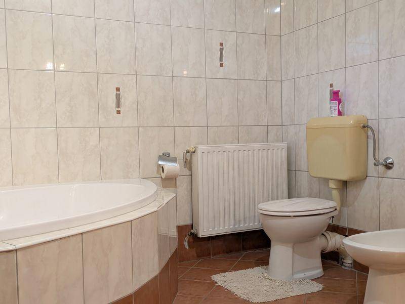 Nagyméretű fürdő és 2 wc, reggeli készülődésnél nincs sorban állás.