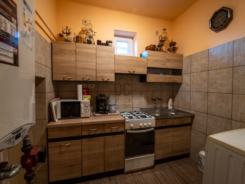 A 70 m²-es, jól beosztott házban zárt előtér, folyosó, 2 és fél szoba, konyha és étkező kapott helyet. A fürdőszoba frissen, 4 éve lett felújítva, a nyílászárók és az elektromos vezetékek is cserélve lettek. Télen gázfűtés és vegyes tüzelésű kazán gondoskodik a melegről, nyáron pedig a vastag falak miatt nincs szükség klímára. A ház folytatásában egy 18+18 m²-es melléképület található, valamint egy 20 m²-es gyári lemezgarázs is a kényelmet szolgálja.