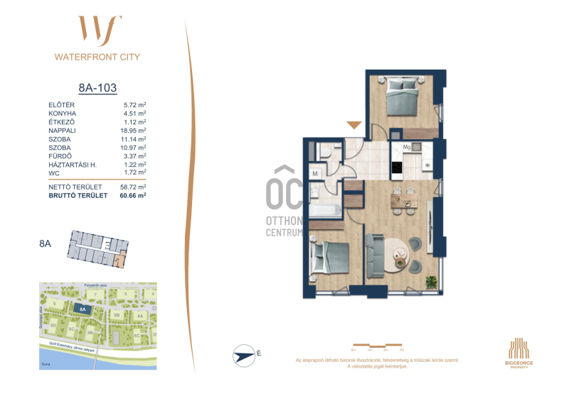 A Waterfront City egy új, modern városnegyed a 3. kerületben, ahol a természet közelsége és a városi kényelem tökéletes egyensúlyban van. A Duna-part közvetlen szomszédságában elhelyezkedő fejlesztés különleges atmoszférát kínál: a sétányt új épületek határolják, üzletekkel, kávézókkal és szolgáltatásokkal, amelyek élhető közösségi teret teremtenek.