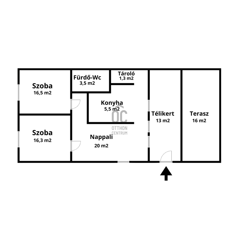 A tágas nappali mellett 2 külön nyíló hálószoba is van.
