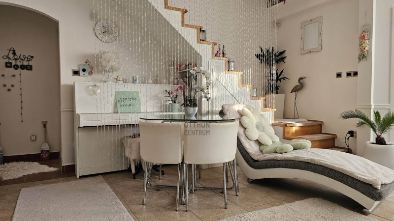 A 160 m²-es, kétszintes ingatlan 1997-ben épült, könnyűszerkezetes technológiával, kiváló hőszigeteléssel. A ház folyamatosan karbantartott és teljeskörűen felújított: megújult az elektromos hálózat, a fűtési rendszer, a tető, a beltér és a kert is.