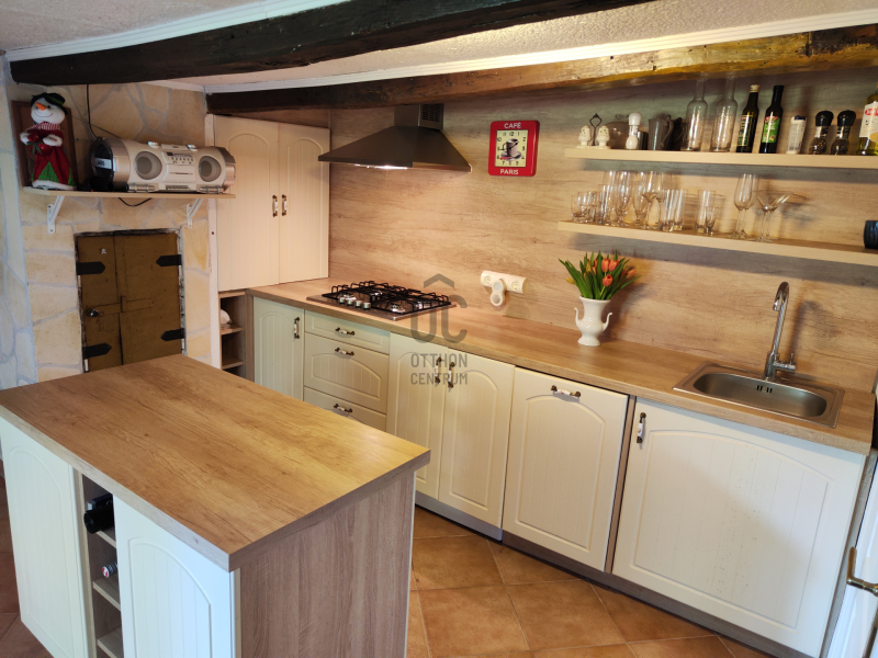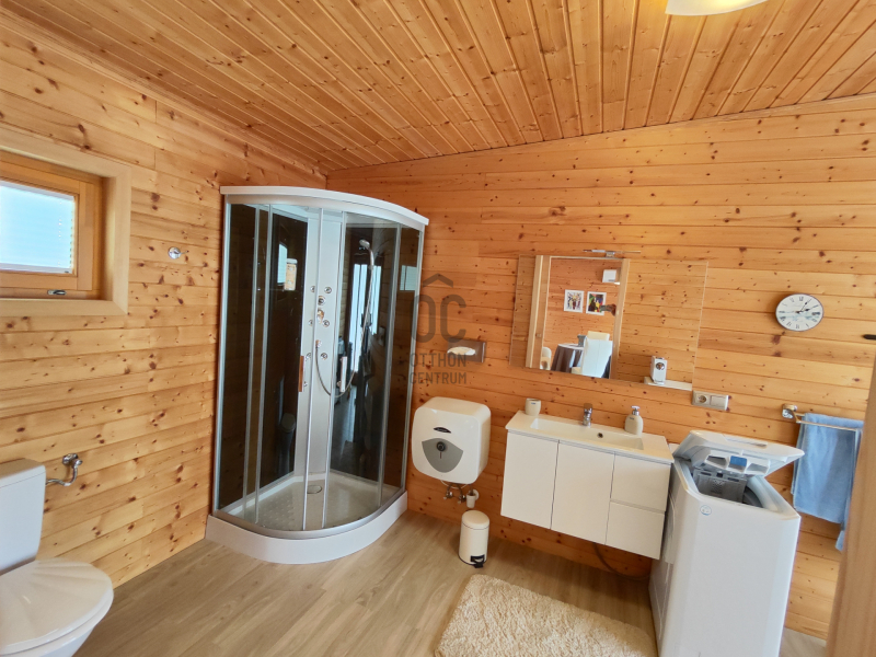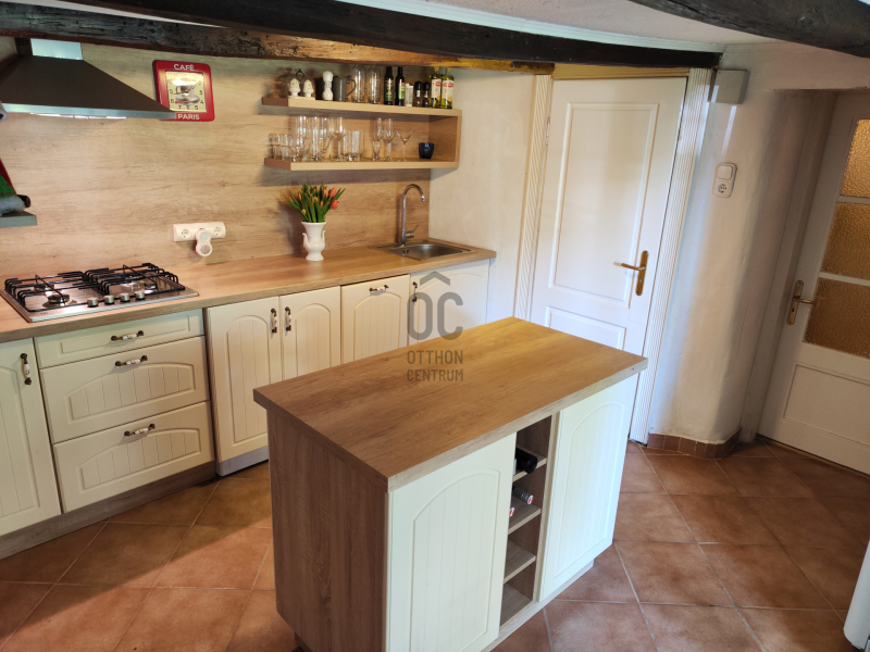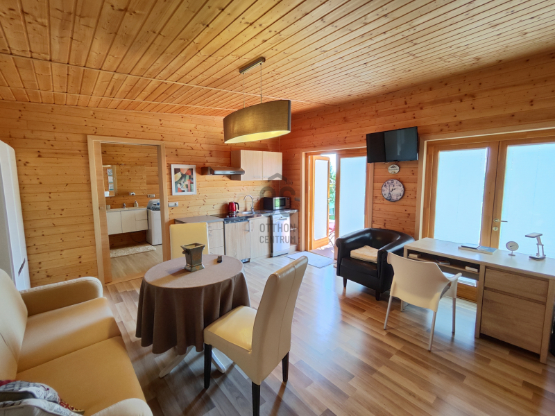 Továbbá az udvarban van egy téliesített nagy teraszos vendégház, melyben szoba-konyha, zuhanyzó/ WC került kialakításra.