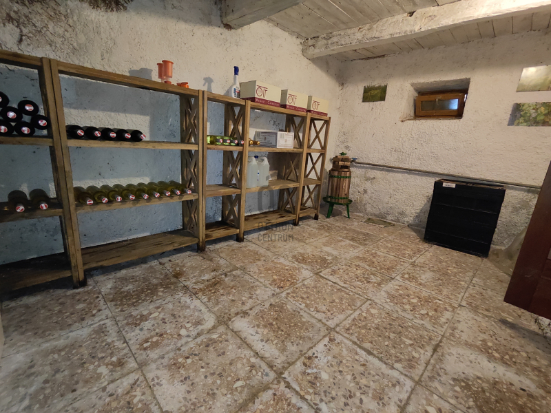 A hátsó ca. 150 éves házrész vastag kő falazatú, a régi idők atmoszféráját hordozza magában. Belmagassága kb. 194cm ahol szoba, étkező, konyha, fürdőszoba, közlekedő, WC, pince kapott helyet, egy 10 m2-es fedett terasz található előtte.