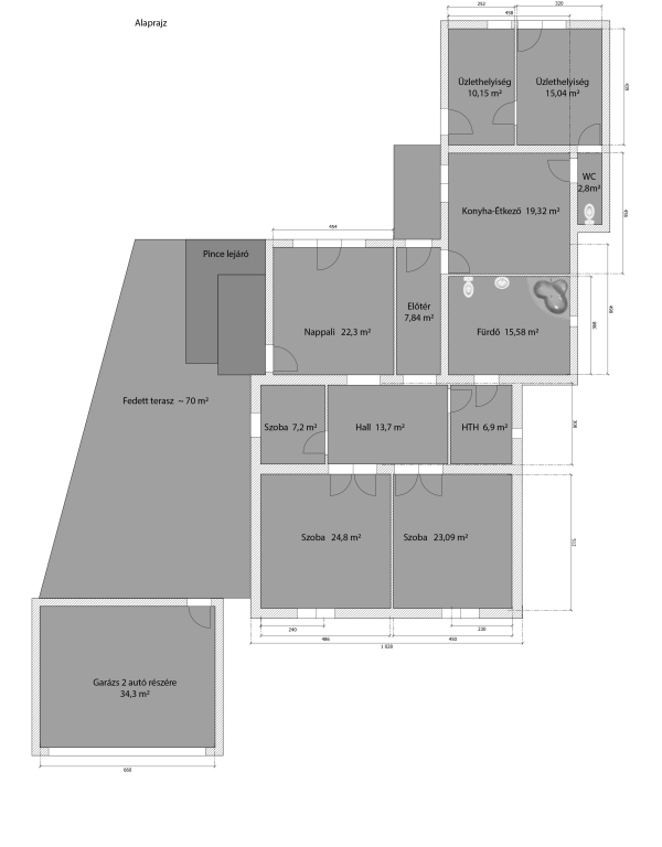 Tárolásra a nappali alatt kialakított 13,5m2-es pince kiváló lehetőséget ad.