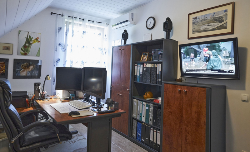 Az emeleti részen iroda, illetve vendégek fogadására alkalmas apartman lakás található, ami külön bejárattal is megközelíthető.