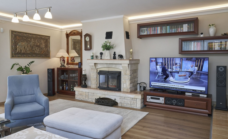 - Kamin im Wohnzimmer,