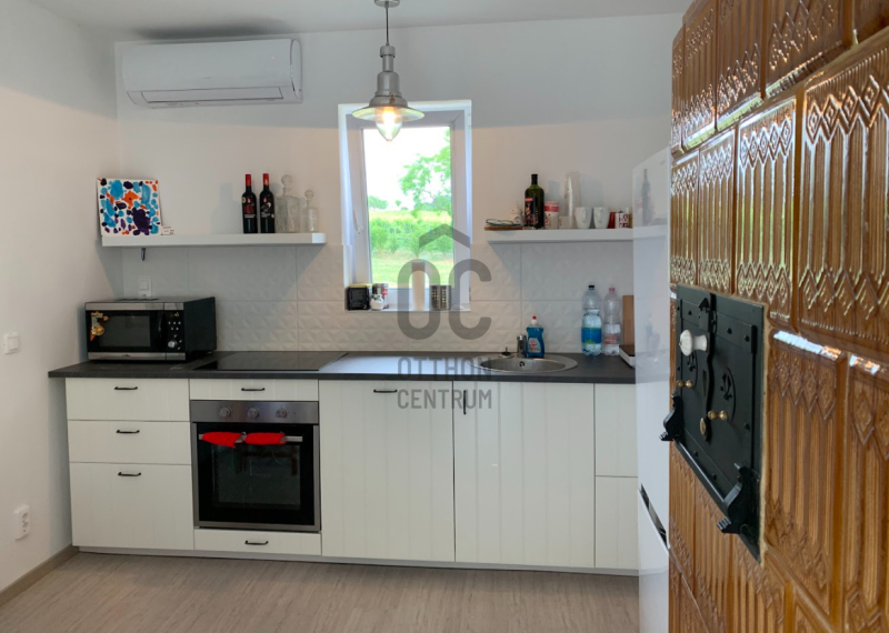 Cserépkályha a konyhában (átvezetéssel a kis hálószobába)