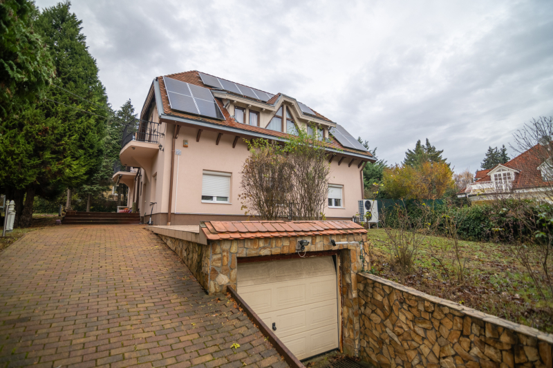 Eladó családi ház ritka dupla telken (1427 m²) Máriaremetén, a II. kerület egyik legjobb részén. A ház kiváló szerkezeti állapotban van, 1990 körül épült tömör téglából, vastag falakkal. 2016-ban teljeskörű felújításon esett át: új szigetelés, 3 rétegű műanyag nyílászárók, belső felújítások, pince is megújult.