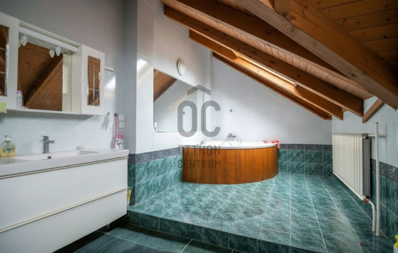 A ház 7 szobás, 5 WC-vel, 4 zuhanyzóval, 2 nappalival és felszerelt konyhával, így ideális nagycsaládosoknak vagy befektetőknek. A környék kiváló infrastruktúrával rendelkezik: iskola, orvos, bolt, játszótér, uszoda a közelben.