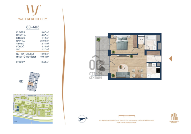 A Waterfront City egy új, modern városnegyed a 3. kerületben, ahol a természet közelsége és a városi kényelem tökéletes egyensúlyban van. A Duna-part közvetlen szomszédságában elhelyezkedő fejlesztés különleges atmoszférát kínál: a sétányt új épületek határolják, üzletekkel, kávézókkal és szolgáltatásokkal, amelyek élhető közösségi teret teremtenek.