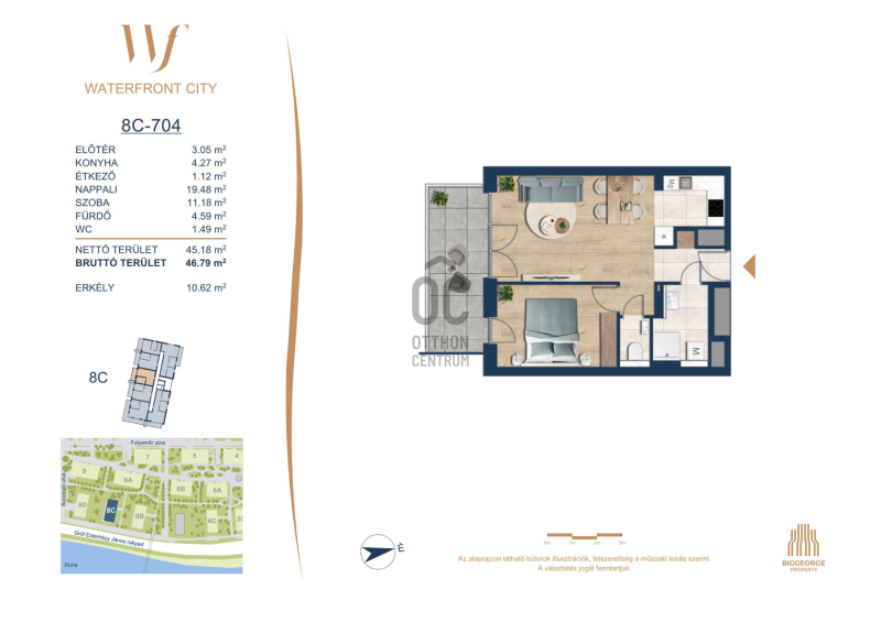 A Waterfront City egy új, modern városnegyed a 3. kerületben, ahol a természet közelsége és a városi kényelem tökéletes egyensúlyban van. A Duna-part közvetlen szomszédságában elhelyezkedő fejlesztés különleges atmoszférát kínál: a sétányt új épületek határolják, üzletekkel, kávézókkal és szolgáltatásokkal, amelyek élhető közösségi teret teremtenek.