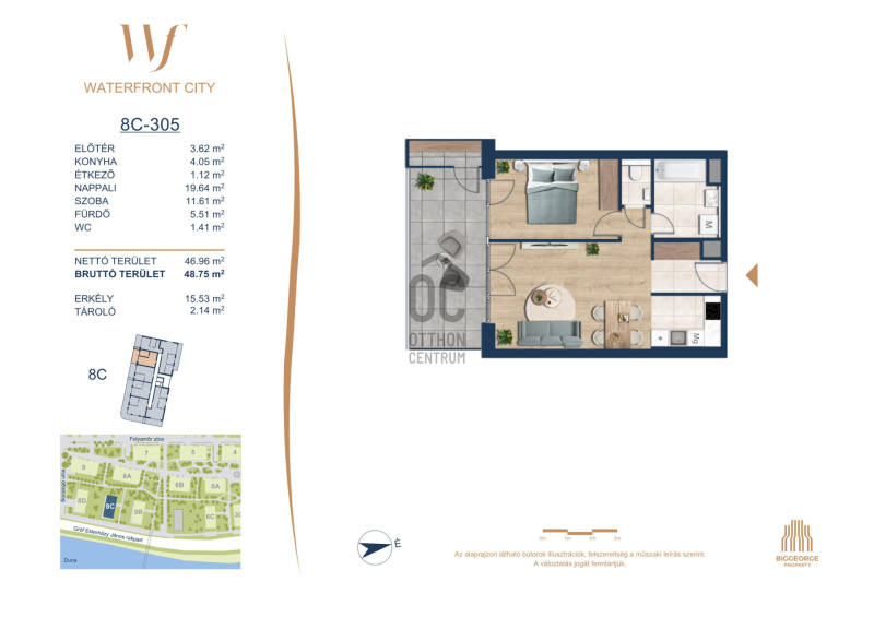 A Waterfront City egy új, modern városnegyed a 3. kerületben, ahol a természet közelsége és a városi kényelem tökéletes egyensúlyban van. A Duna-part közvetlen szomszédságában elhelyezkedő fejlesztés különleges atmoszférát kínál: a sétányt új épületek határolják, üzletekkel, kávézókkal és szolgáltatásokkal, amelyek élhető közösségi teret teremtenek.