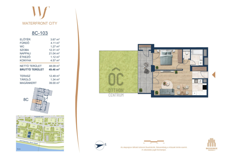 A Waterfront City egy új, modern városnegyed a 3. kerületben, ahol a természet közelsége és a városi kényelem tökéletes egyensúlyban van. A Duna-part közvetlen szomszédságában elhelyezkedő fejlesztés különleges atmoszférát kínál: a sétányt új épületek határolják, üzletekkel, kávézókkal és szolgáltatásokkal, amelyek élhető közösségi teret teremtenek.