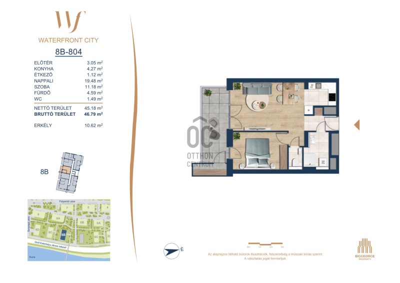 A Waterfront City egy új, modern városnegyed a 3. kerületben, ahol a természet közelsége és a városi kényelem tökéletes egyensúlyban van. A Duna-part közvetlen szomszédságában elhelyezkedő fejlesztés különleges atmoszférát kínál: a sétányt új épületek határolják, üzletekkel, kávézókkal és szolgáltatásokkal, amelyek élhető közösségi teret teremtenek.