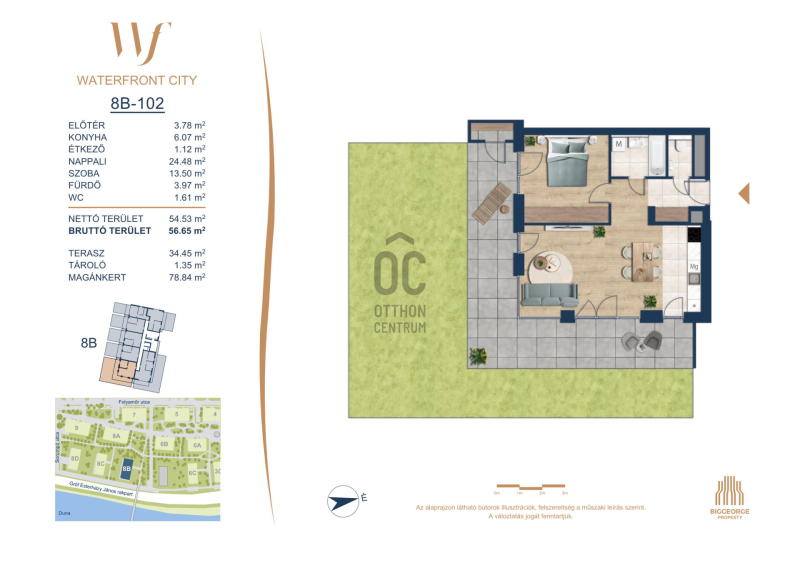 A Waterfront City egy új, modern városnegyed a 3. kerületben, ahol a természet közelsége és a városi kényelem tökéletes egyensúlyban van. A Duna-part közvetlen szomszédságában elhelyezkedő fejlesztés különleges atmoszférát kínál: a sétányt új épületek határolják, üzletekkel, kávézókkal és szolgáltatásokkal, amelyek élhető közösségi teret teremtenek.