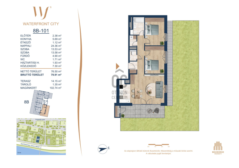 A Waterfront City egy új, modern városnegyed a 3. kerületben, ahol a természet közelsége és a városi kényelem tökéletes egyensúlyban van. A Duna-part közvetlen szomszédságában elhelyezkedő fejlesztés különleges atmoszférát kínál: a sétányt új épületek határolják, üzletekkel, kávézókkal és szolgáltatásokkal, amelyek élhető közösségi teret teremtenek.