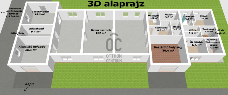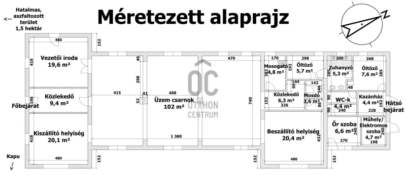 Az ingatlan 15.000 nm-es, azaz 1,5 hektáros teleken helyezkedik el, kiváló állapotú, nagy teherbírású útról közelíthető meg.