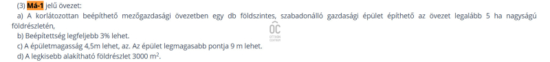 - besorolás: általános mezőgazdasági terület (jelenleg)