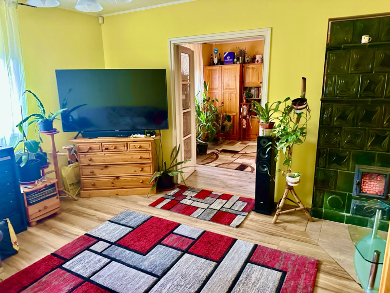 A fő épület mely 90 m2 egy tégla szerkezetű Kádár kocka. 2017-ben teljeskörűen fel lett újítva. A villany és víz vezetékek cserélve lettek, a nyílászárók redőnnyel és szúnyoghálóval ellátott műanyag ablakok. A ház melegéről gáz cirkó gondoskodik, de van egy gyönyörű cserépkályha is, mely a hűvösebb napokon további meleget biztosít, valamint, hűtő-fűtő klímával is ellátott! A mennyezet, gipszkarton segítségével alacsonyabbra lett hozva, melyre szigetelés is került.