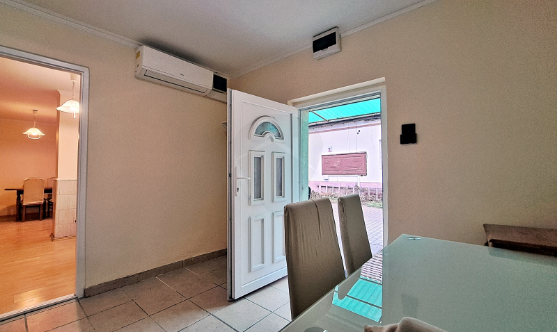 A ház két tágas szobával rendelkezik, a konyha közvetlenül a teraszra nyílik, így bármikor ott tudsz reggelizni, stb.