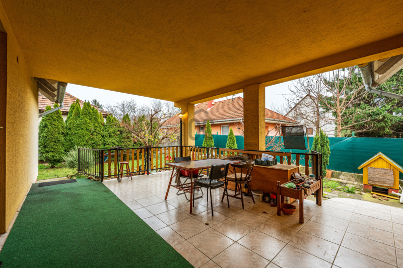 A ház 1996-ban épült, jól átgondolt alaprajzzal, praktikus térkapcsolatokkal. A telek két utcafronti bejárattal rendelkezik, egyik oldalon a 23 m²-es garázzsal, ahonnan közvetlen átjárás nyílik a lakótérbe – ez különösen kényelmes a mindennapokban.
