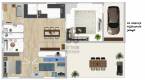 A főbejáraton belépve egy tágas, világos nappali fogadja, mely a terasz irányába megnyitható, így kellemes átmenet teremthető a beltér és a kert között. A nappalihoz kapcsolódik a külön étkező, amelyből a konyha és a spájz is megközelíthető.