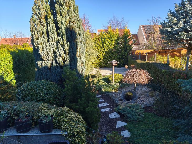 A telken be lett szerelve egy automatizált öntözőrendszer, valamint a telek végében egy 5 m2-es műanyag tároló is található.