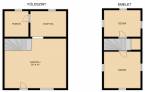 A ház alapterülete 40 nm plusz az emeleti két félszoba. Kialakításra került egy kis konyha és fürdő és egy a ház alapterületéhez képest nagy nappali - étkező. Az épület alatt egy közel 80 nm-es pince, ami garázsként (és tárolóként) is tökéletesen funkcionálhat.