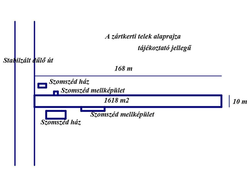 A telek stabilizált dűlőút mellett csendes, nyugodt környéken, aszfaltozott úttól kb. 250 méterre helyezkedik el. Gépjárművek behajtása a dűlőút felől kapubejárón keresztül egyszerűen kialakítható, jelenleg nem megoldott.